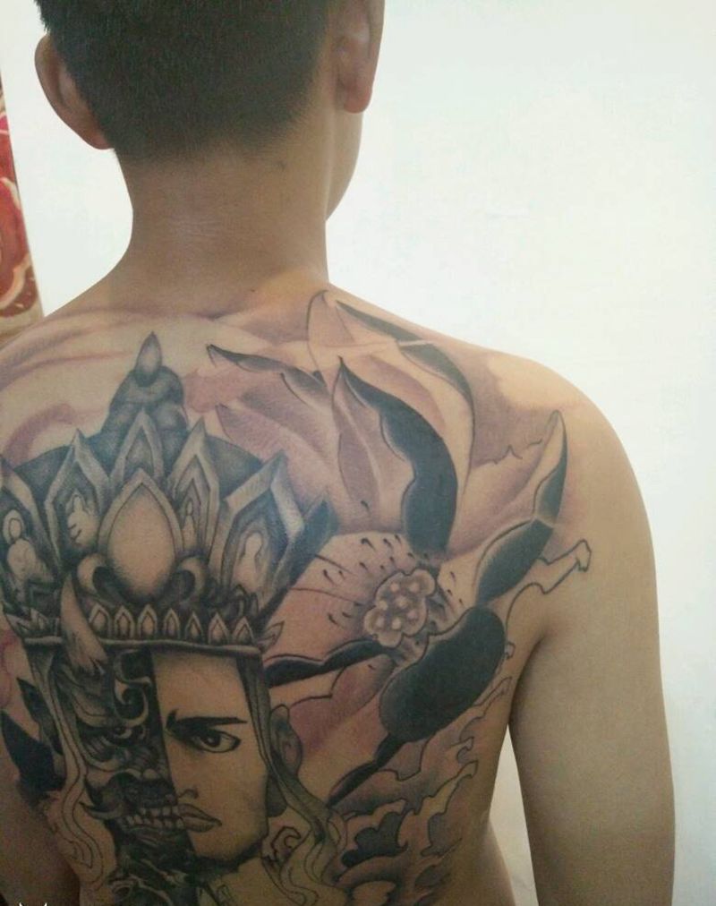 一念之间第二次纹身图片_背部传统人物修改纹身图案