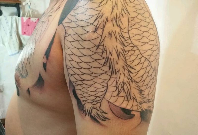 花胸龙遮盖纹身图片_胸部手臂传统动物鬼神遮盖纹身图案