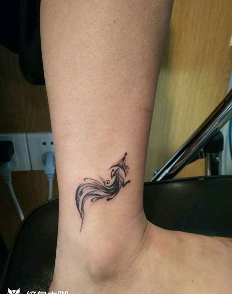 狐狸纹身图片_腿部脚部传统清新动物成品纹身图案