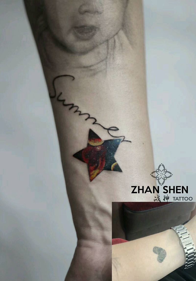 当前位置: 首页 >河北省廊坊市纹身店-妖舞刺青纹身图案>星空遮盖纹身图片_手部手臂水墨点刺六芒星五角星星空纹身图案