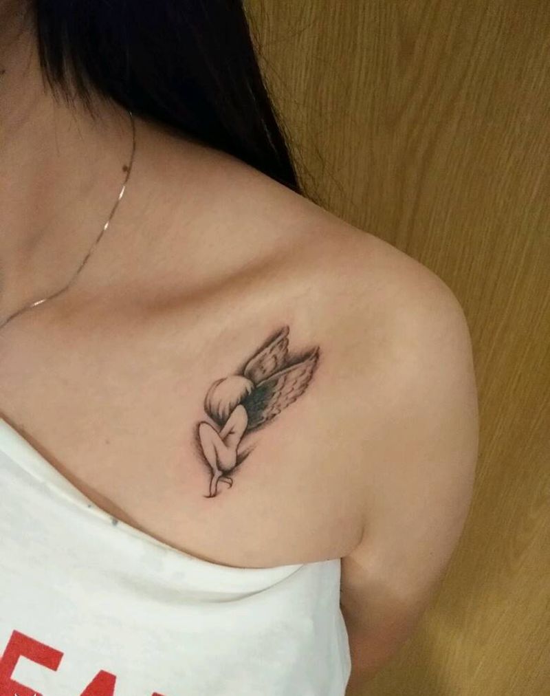 小天使纹身图片_胸部腹部手臂欧美写实人物鬼神宗教成品纹身图案