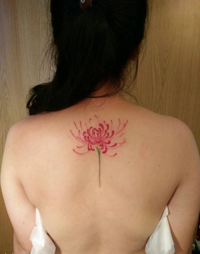 当前位置: 首页 >河北省廊坊市纹身店-妖舞刺青纹身图案>彼岸花纹身图片_颈部背部欧美清新写实植物成品纹身图案