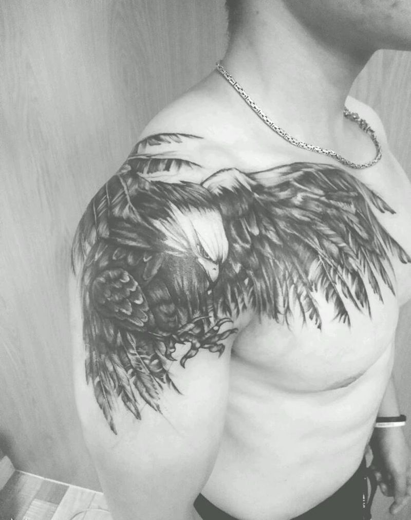 抽象鹰纹身图片_背部胸部欧美写实水墨赢抽象艺术纹身图案