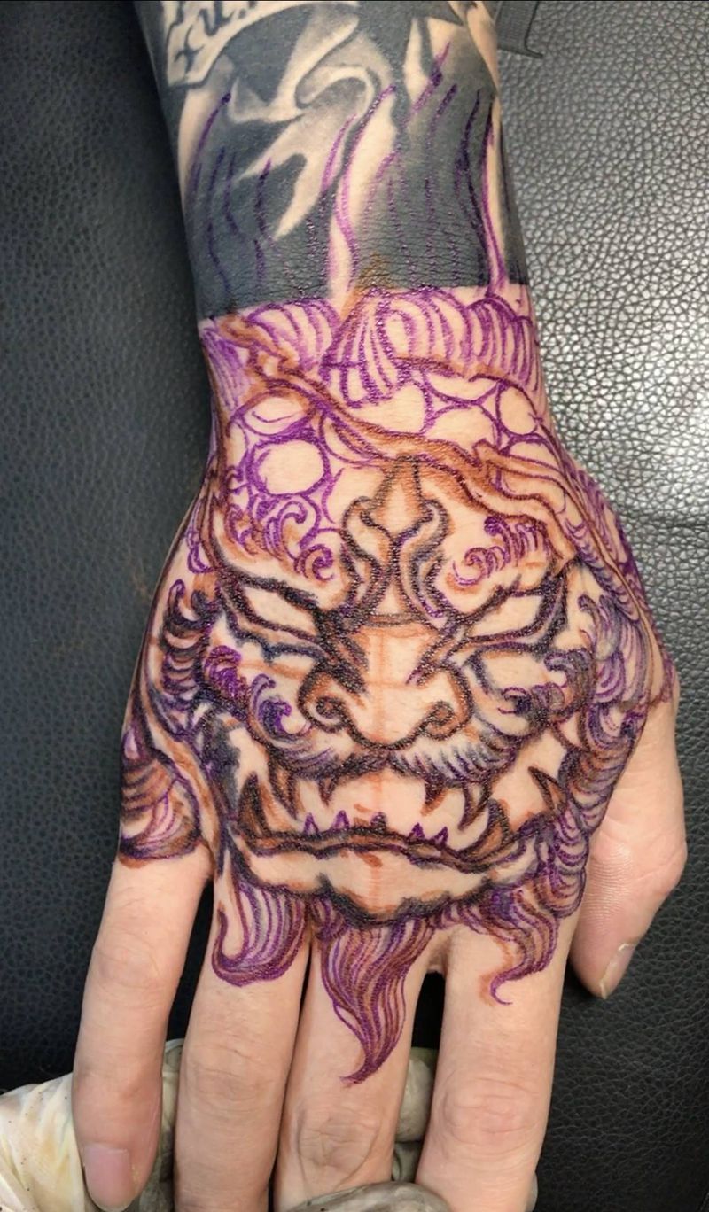 当前位置: 首页 >河北省廊坊市纹身店-飞墨刺青纹身图案>唐狮花手纹身图片_手部新传统唐狮花手纹身图案