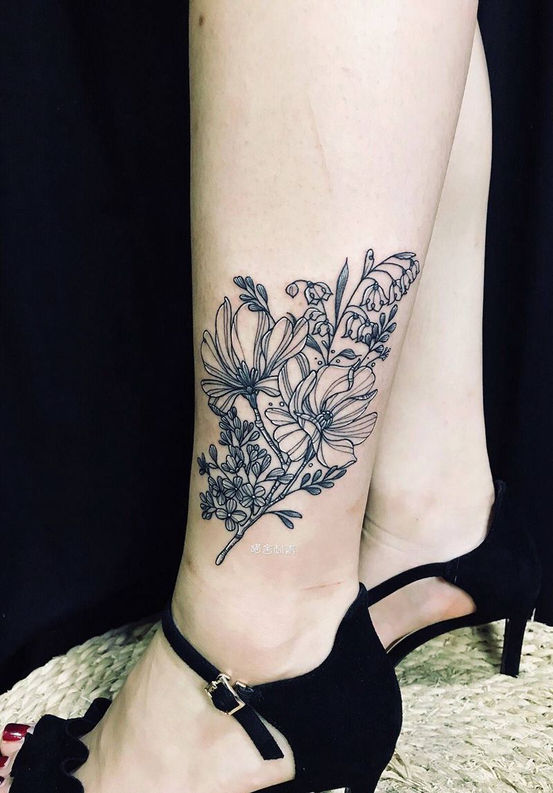 花纹身图片_手臂腿部点刺几何花小清新纹身脚腕纹身图案