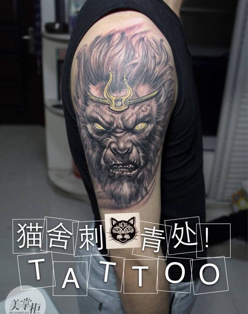 当前位置: 首页 >河北省衡水市纹身店-猫舍刺青纹身图案>黑暗悟空纹身图片_欧美肖像写实人物鬼神手臂纹身图案