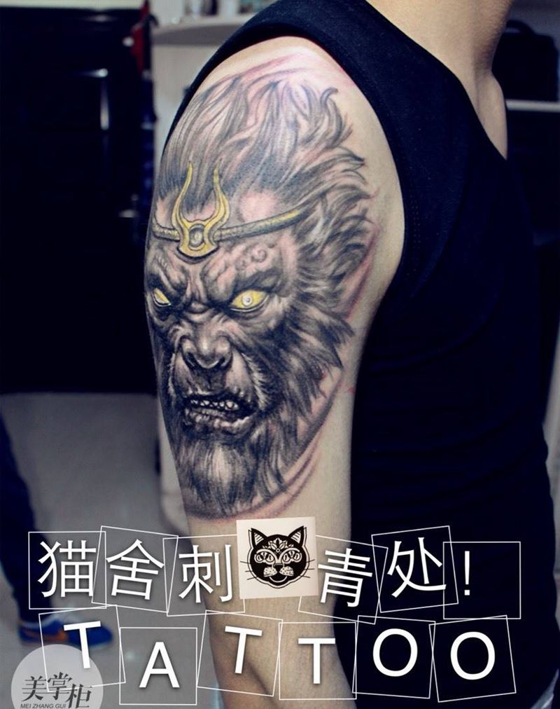 当前位置: 首页 >河北省衡水市纹身店-猫舍刺青纹身图案>黑暗悟空纹身图片_欧美肖像写实人物鬼神手臂纹身图案