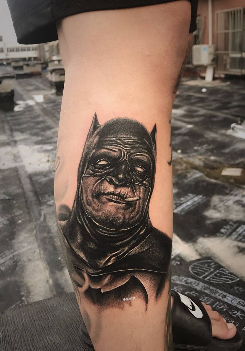 蝙蝠侠纹身图片_手臂肩部欧美写实新传统蝙蝠侠欧美黑灰写实纹身图案