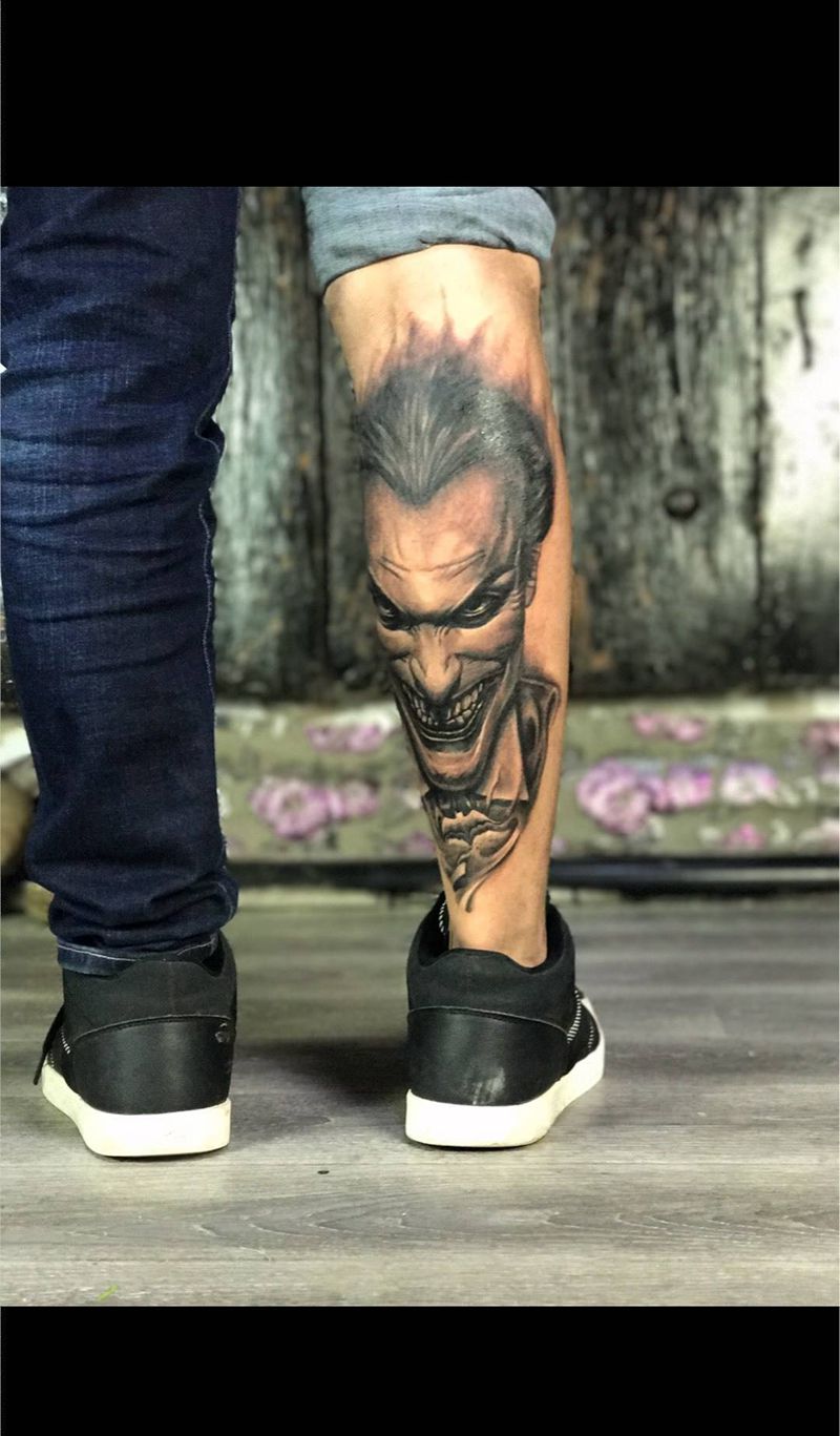 小丑纹身图片_成品手稿插画腿部欧美习俗写实肖像人物纹身图案