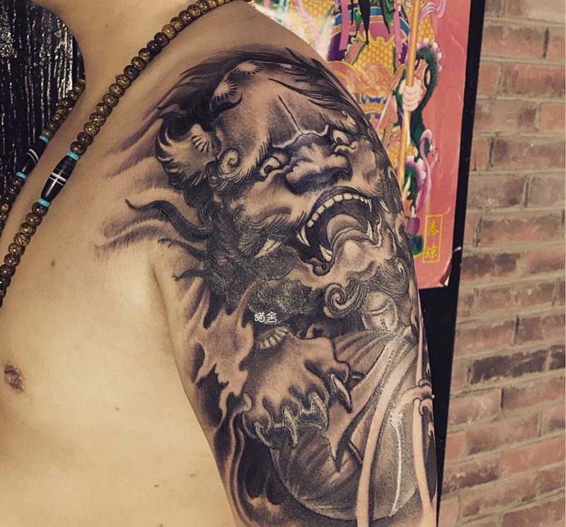 当前位置: 首页 >河北省衡水市纹身店-猫舍刺青纹身图案>唐狮纹身图片