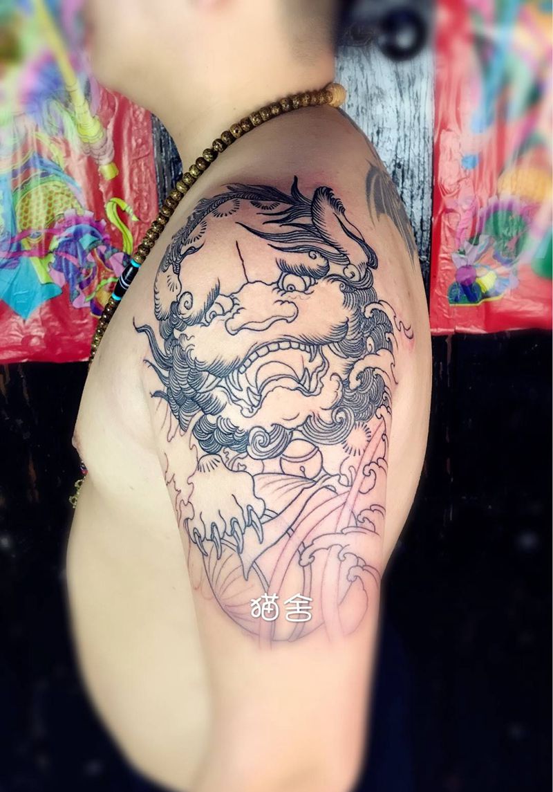 当前位置: 首页 >河北省衡水市纹身店-猫舍刺青纹身图案>唐狮割线纹身图片