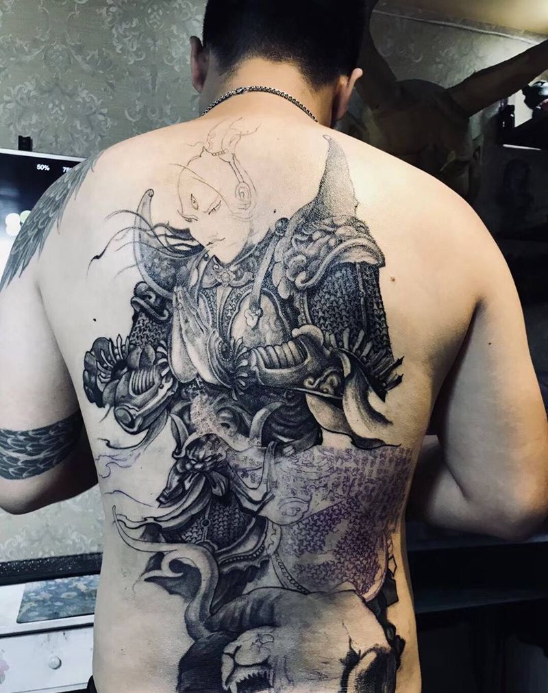 黑灰满背纹身图案