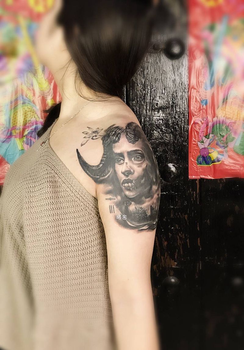 • 纹身吧推荐的披肩图腾半胛纹身图案作品展示