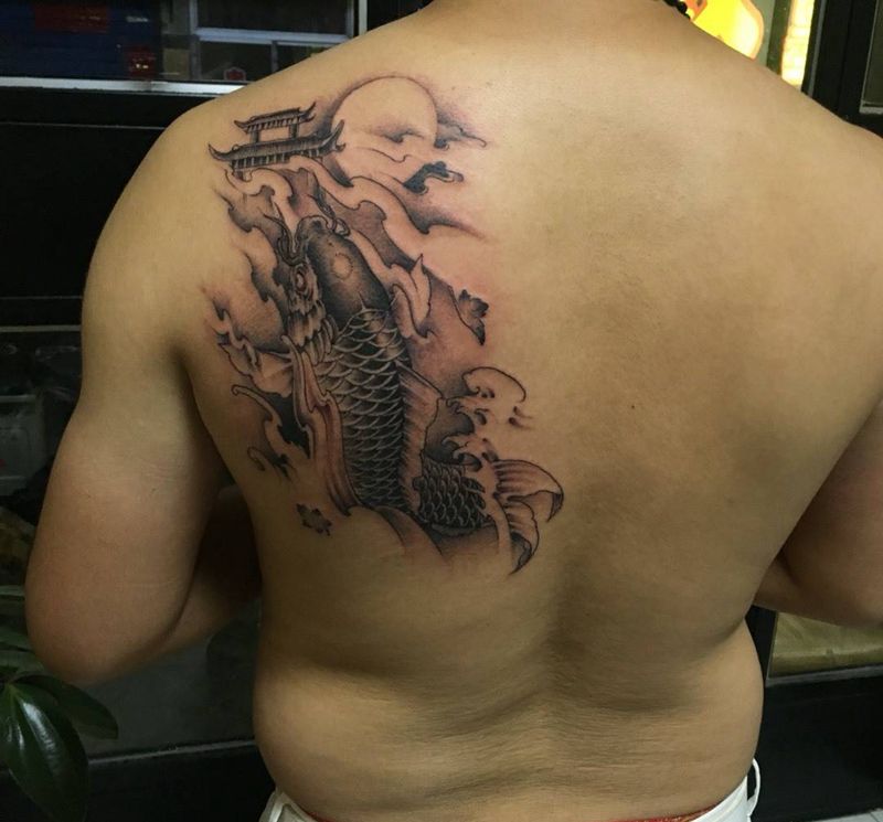 当前位置: 首页 >山西省太原市纹身店-太原御墨刺青纹身图案>后肩鲤鱼跃龙门纹身图片