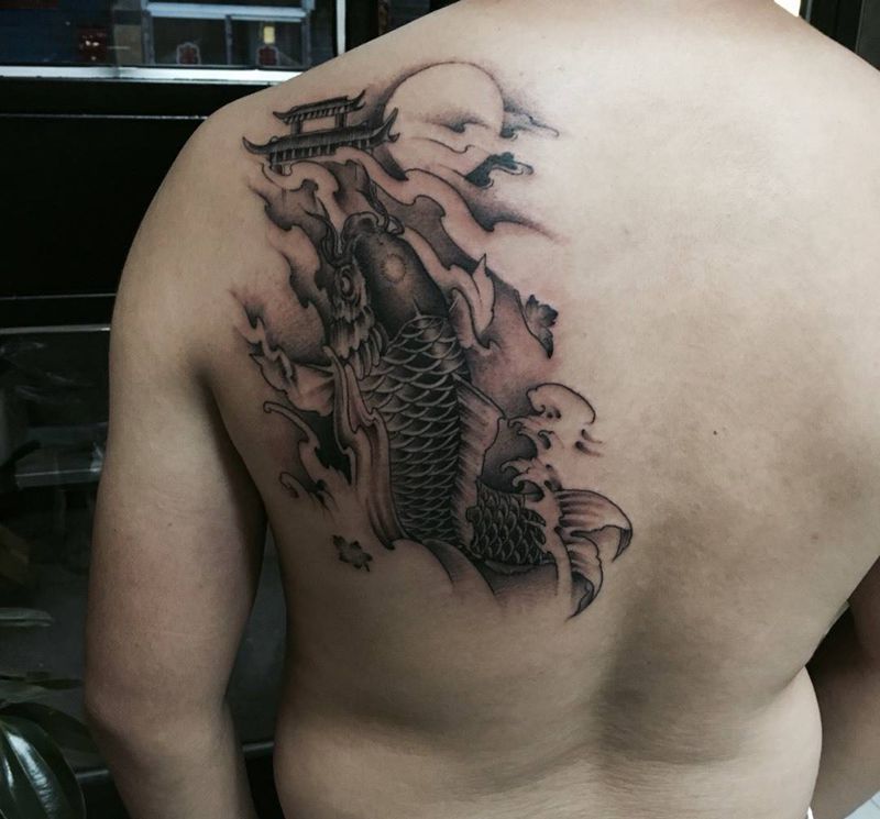 当前位置: 首页 >山西省太原市纹身店-太原御墨刺青纹身图案>后肩鲤鱼跃龙门纹身图片