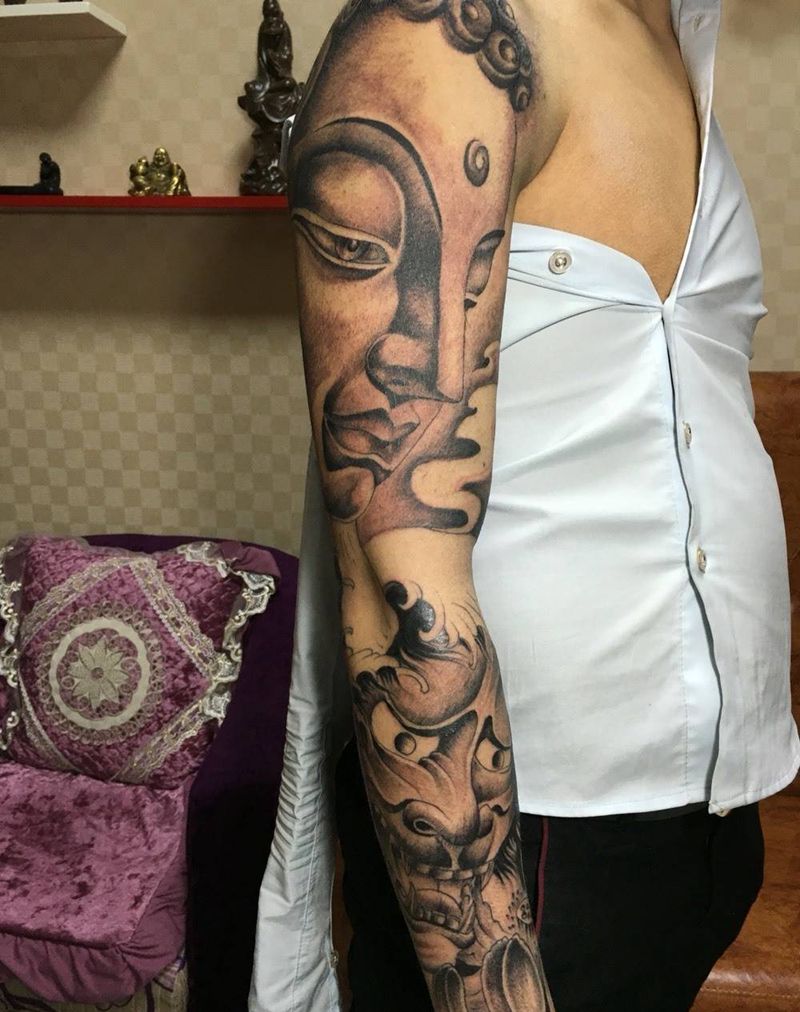 花臂般诺与佛纹身图片