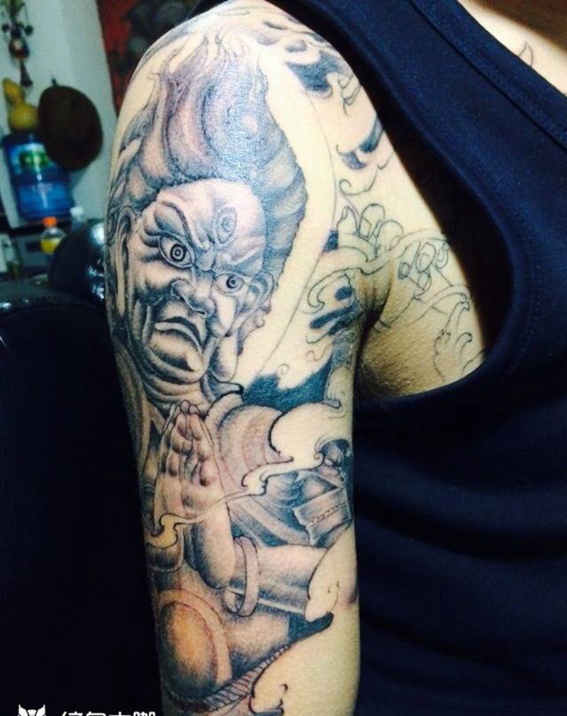 当前位置: 首页 >山西省太原市纹身店-太原御墨刺青纹身图案>三面佛纹身图片_手臂传统人物纹身图案