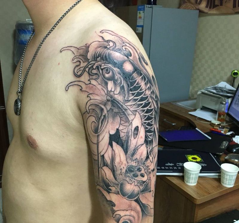 当前位置: 首页 >山西省太原市纹身店-太原御墨刺青纹身图案>大臂鲤鱼、纹身图片