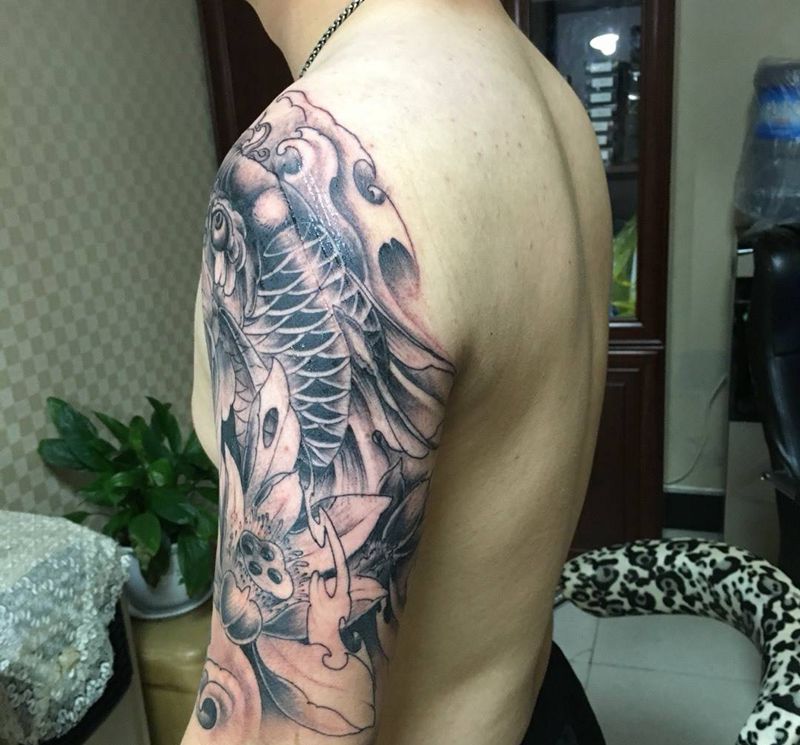 当前位置: 首页 >山西省太原市纹身店-太原御墨刺青纹身图案>大臂鲤鱼、纹身图片