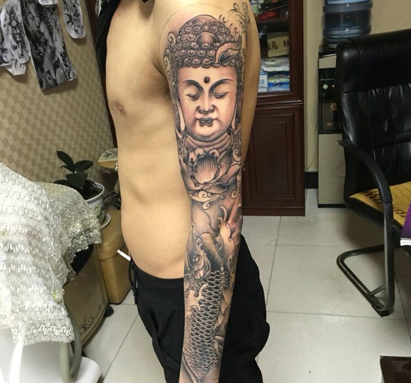 当前位置: 首页 >山西省太原市纹身店-太原御墨刺青纹身图案>佛配鲤纹身图片