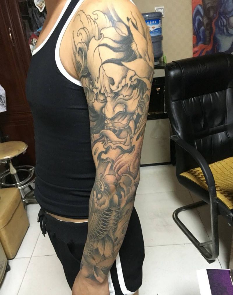 当前位置: 首页 >山西省太原市纹身店-太原御墨刺青纹身图案>花臂完成纹身图片