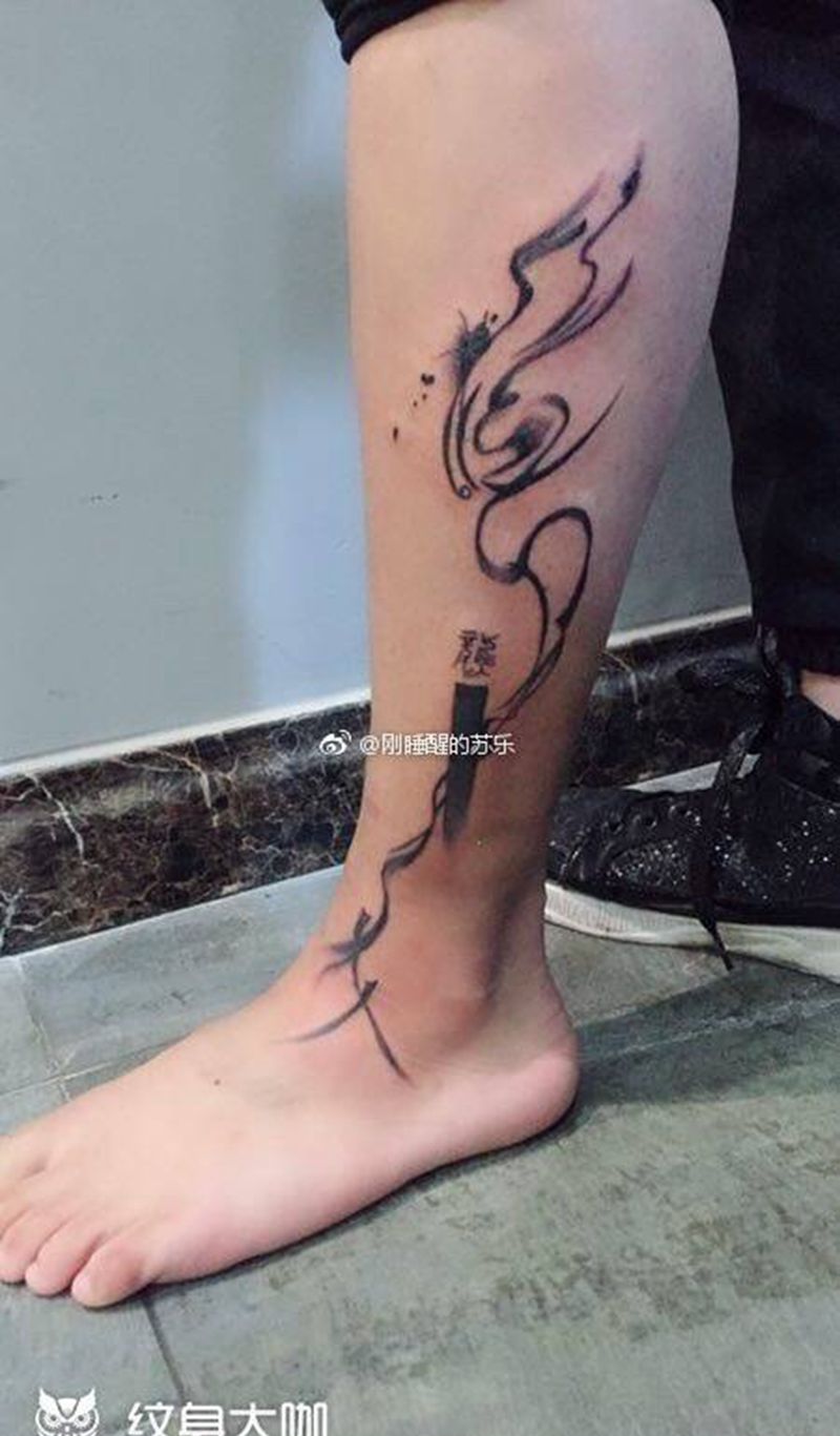 书法纹身图片_腿部脚部成品国画字符纹身图案
