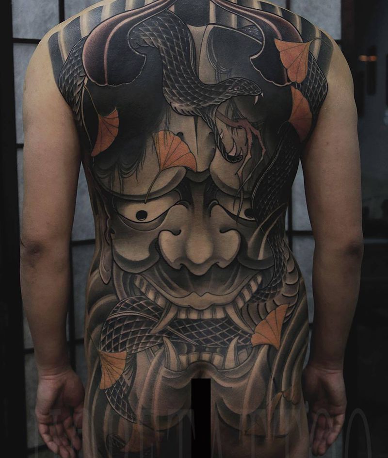 黑灰满背纹身图案