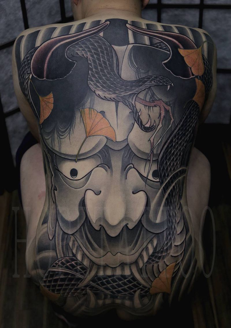 黑灰满背纹身图案