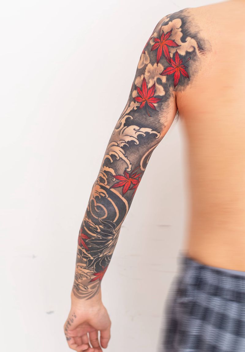 当前位置: 首页 >山西省太原市纹身店-霏刺青纹身图案>鹤花臂纹身图片_手臂新传统花臂纹身图案