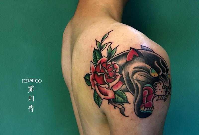 • 纹身吧推荐的披肩图腾半胛纹身图案作品展示