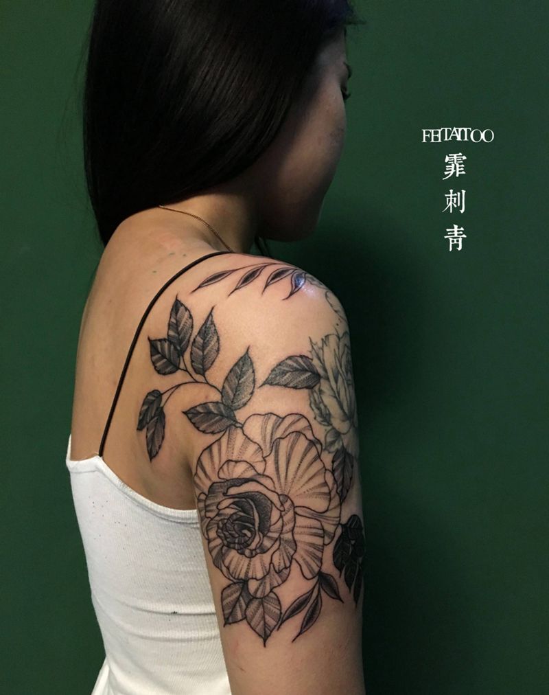 • 女性大花胸纹身_43张霸气漂亮的女性大花胸纹身图案作品