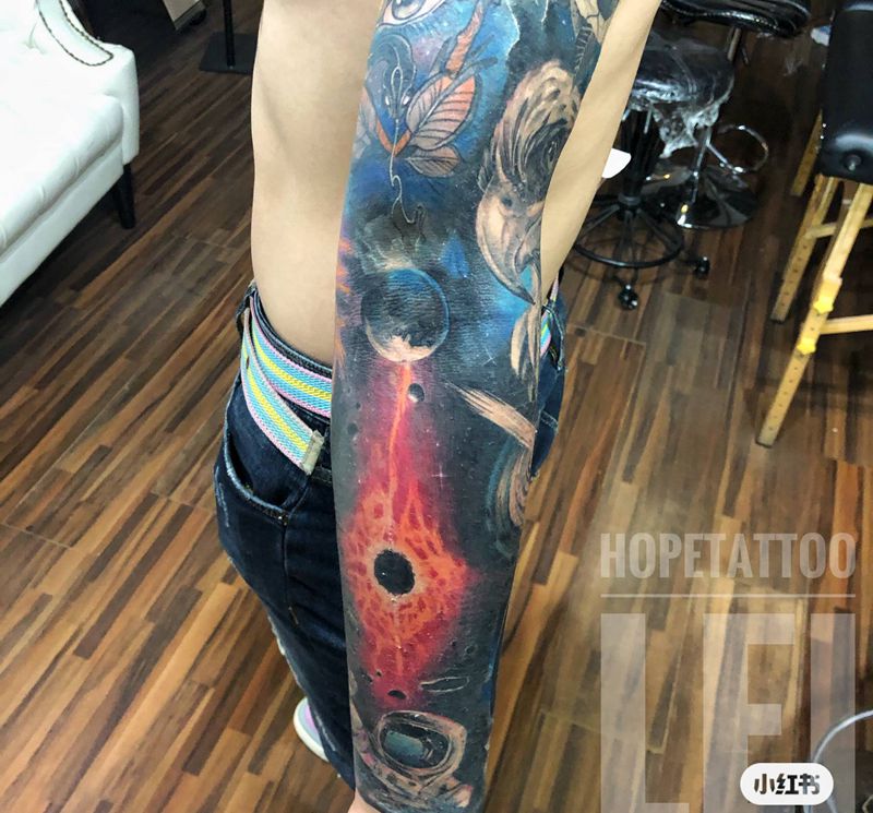 宇宙大神鹰纹身图片_手臂欧美写实纹身图案