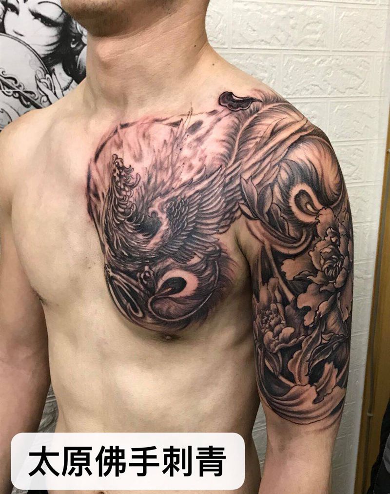 当前位置: 首页 >山西省太原市纹身店-佛手刺青纹身图案>凤满天富贵吉祥纹身图片_肩部胸部新传统纹身图案