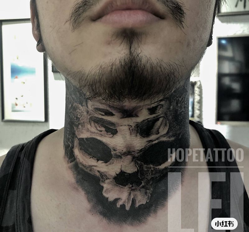 当前位置: 首页 >山西省太原市纹身店-太原琥珀刺青纹身图案>暗黑脖子纹身图片_颈部欧美写实纹身图案