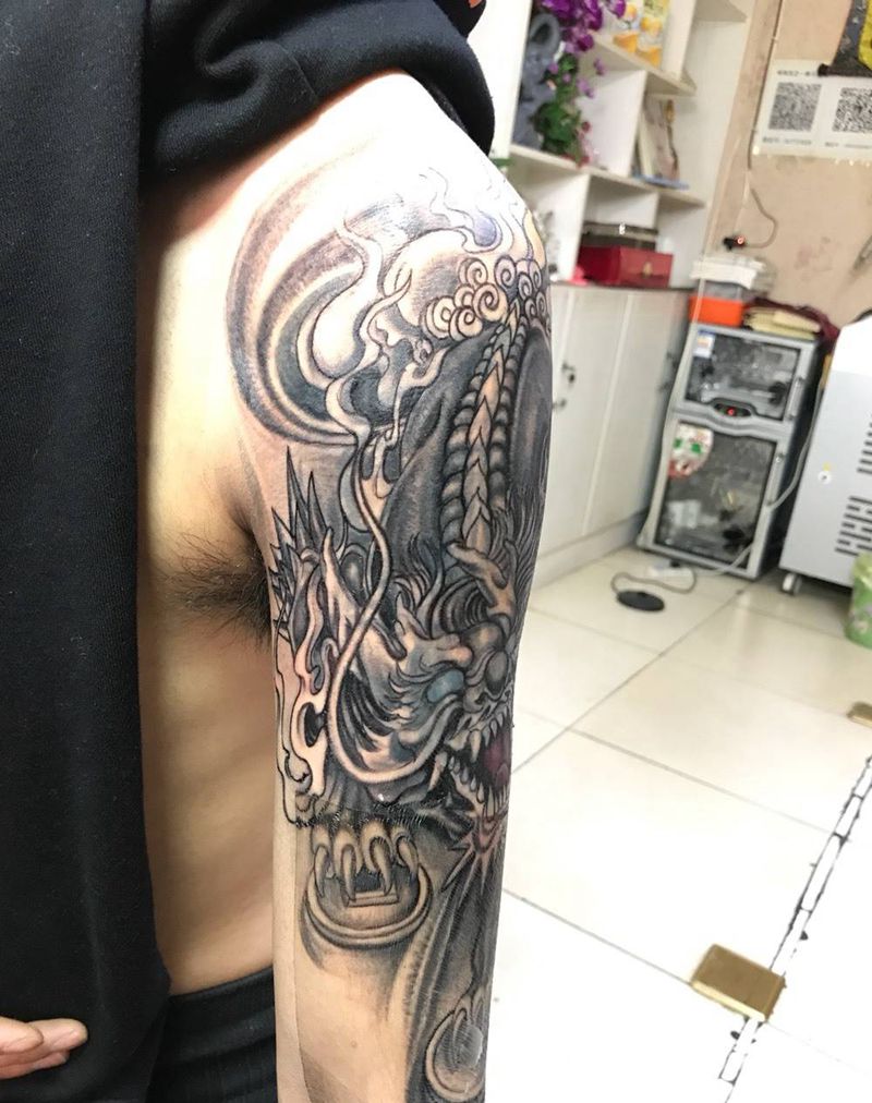 • T网红王老大花腿龙纹身图片_腿部新传统纹身图案