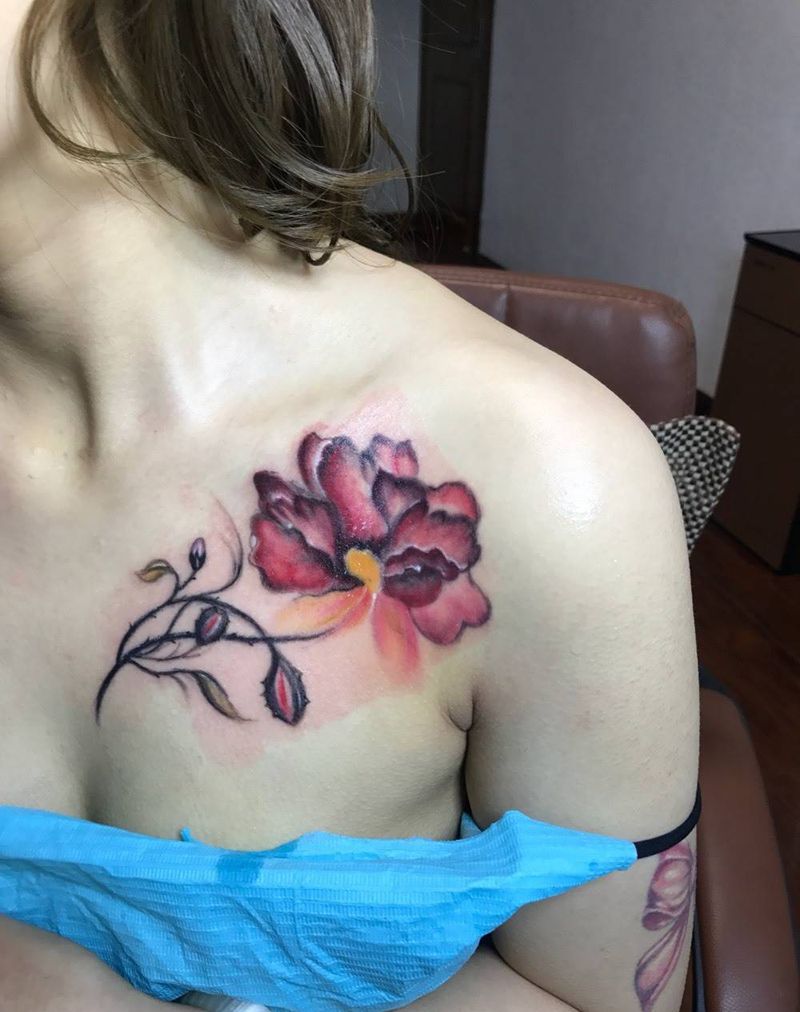 • 女性大花胸纹身_43张霸气漂亮的女性大花胸纹身图案作品