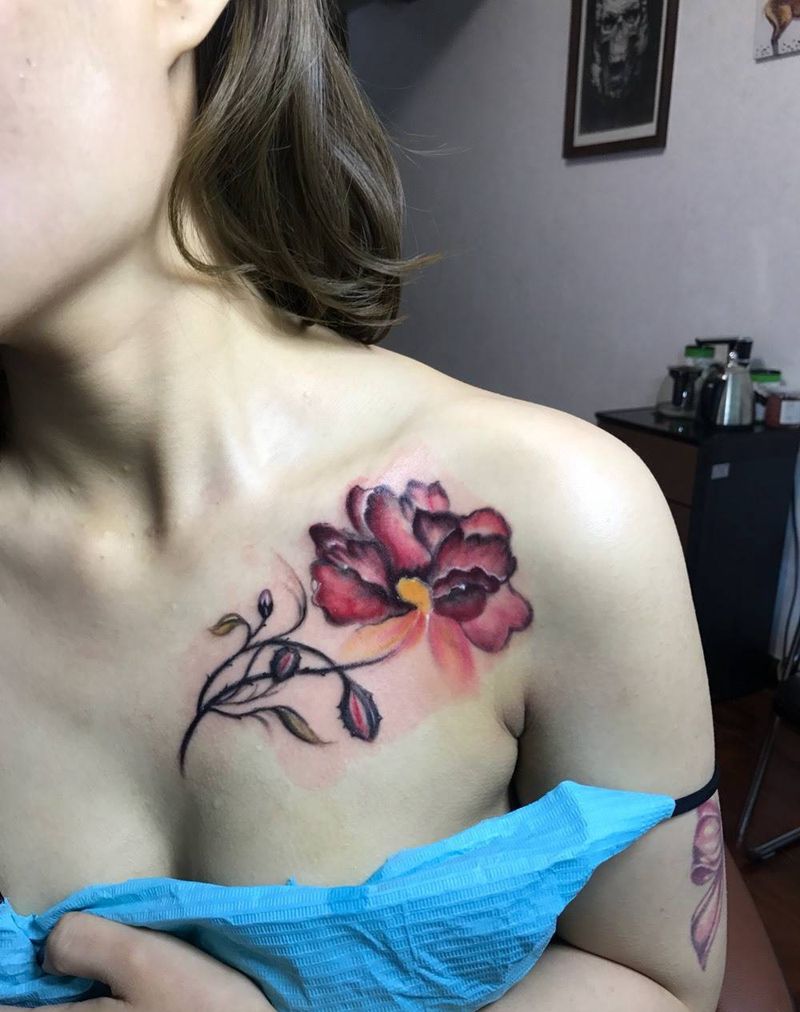 • 女性大花胸纹身_43张霸气漂亮的女性大花胸纹身图案作品