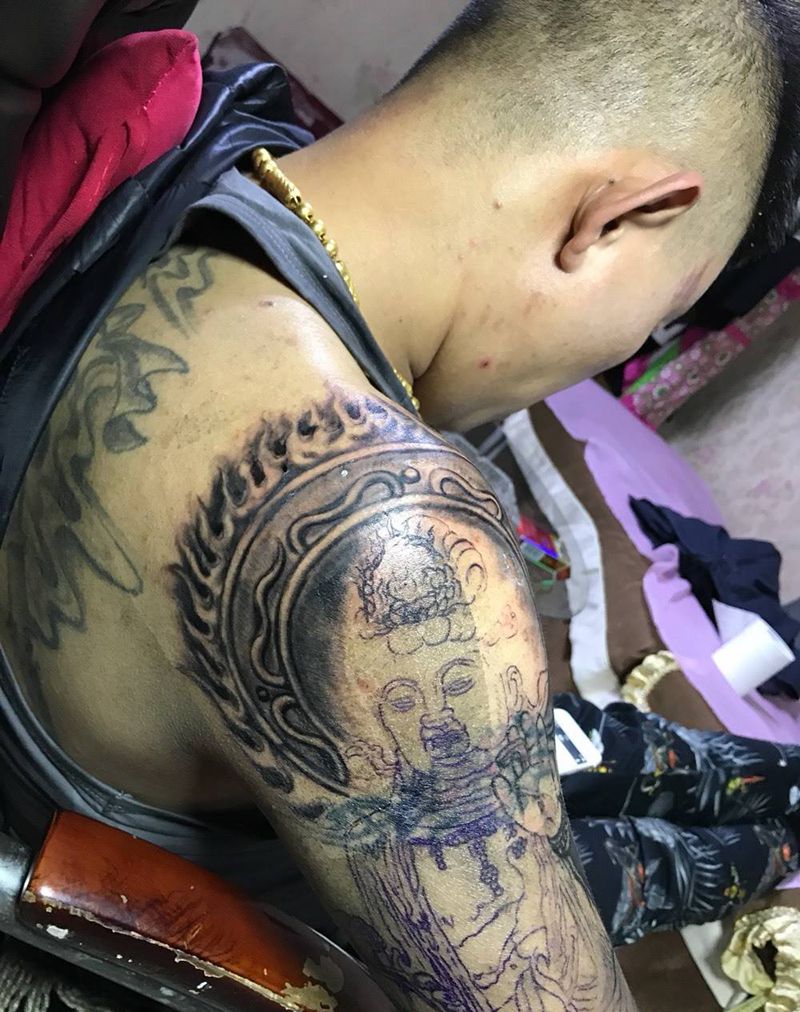 当前位置: 首页 >山西省太原市纹身店-佛手刺青纹身图案>花臂进行中纹身图片