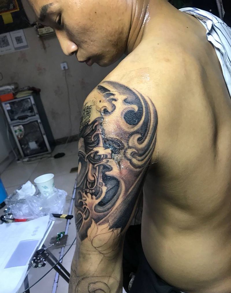 当前位置: 首页 >山西省太原市纹身店-佛手刺青纹身图案>花臂进行中纹身图片
