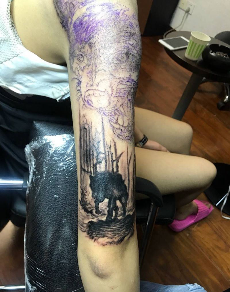 当前位置: 首页 >山西省太原市纹身店-佛手刺青纹身图案>冷月下半部分基本完成纹身图片