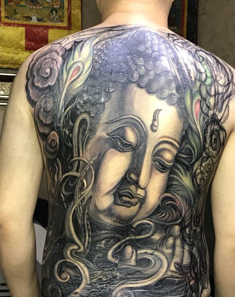 佛,还未完成,还有右侧未完成纹身图片