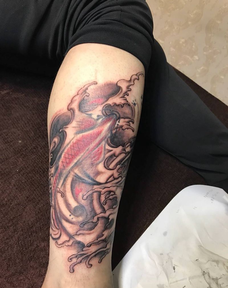• T网红王老大花腿龙纹身图片_腿部新传统纹身图案