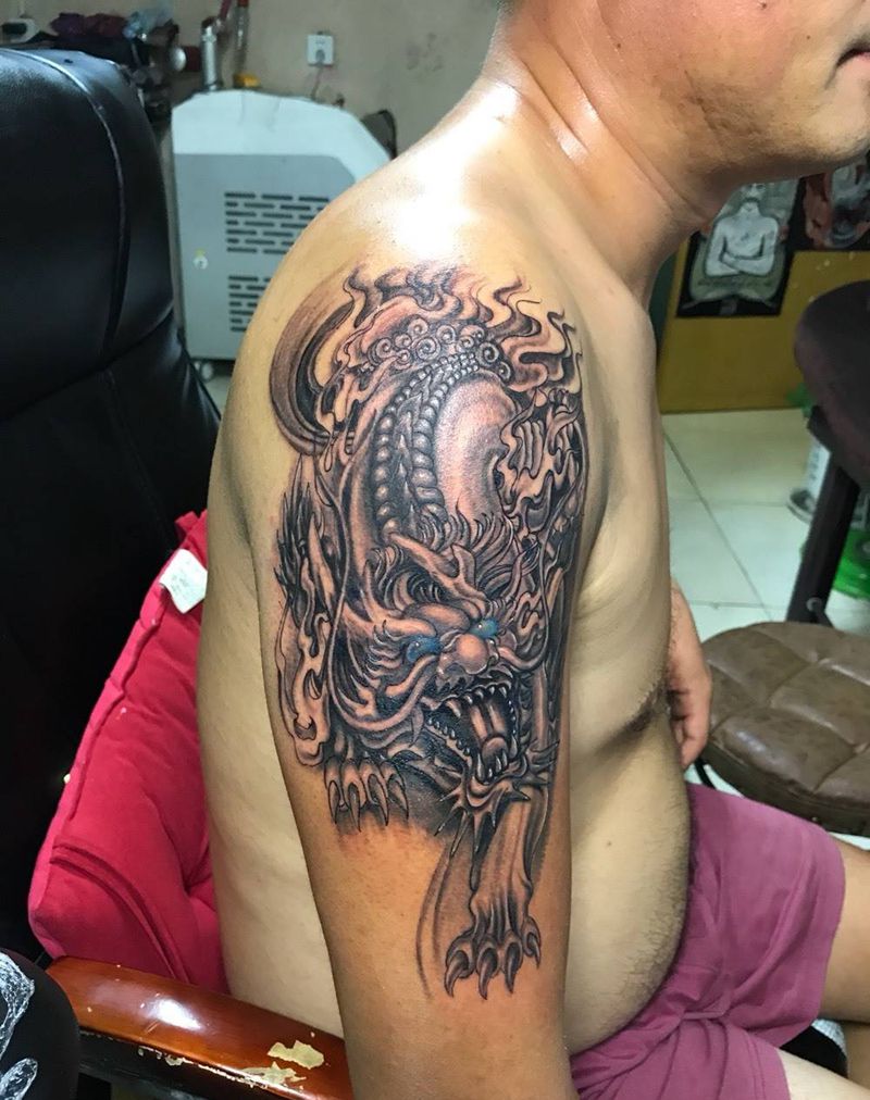 当前位置: 首页 >山西省太原市纹身店-佛手刺青纹身图案>麒麟臂纹身图片