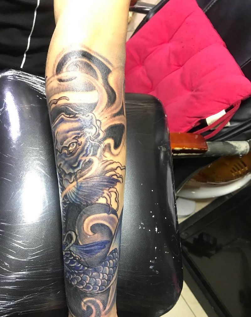• T网红王老大花腿龙纹身图片_腿部新传统纹身图案
