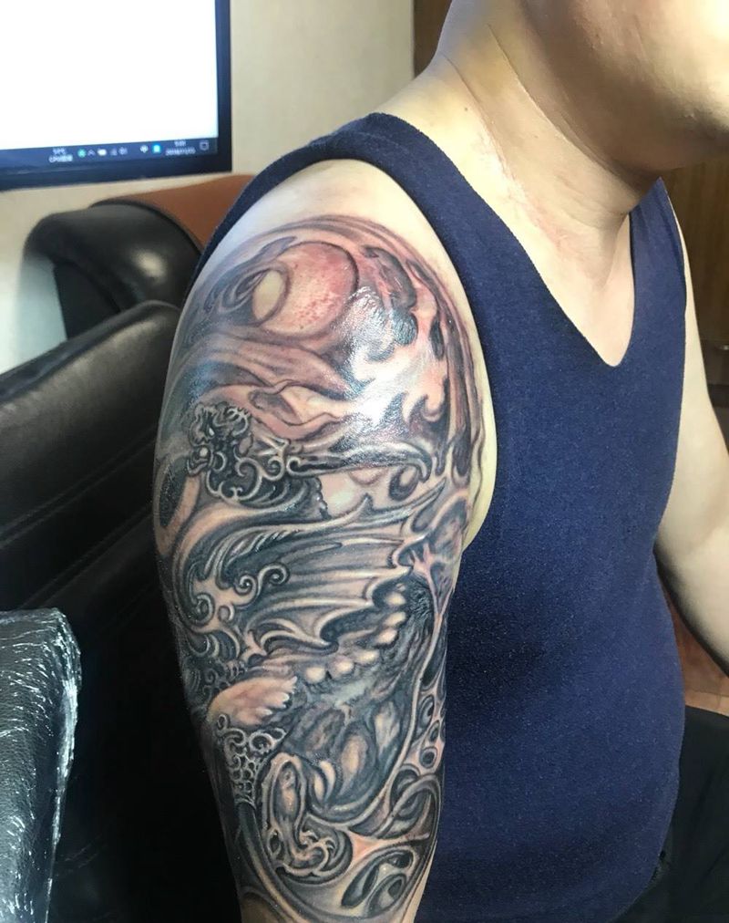 • 纹身吧推荐的披肩图腾半胛纹身图案作品展示