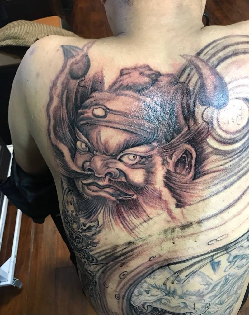 满背五鬼运财,还未完成纹身图片