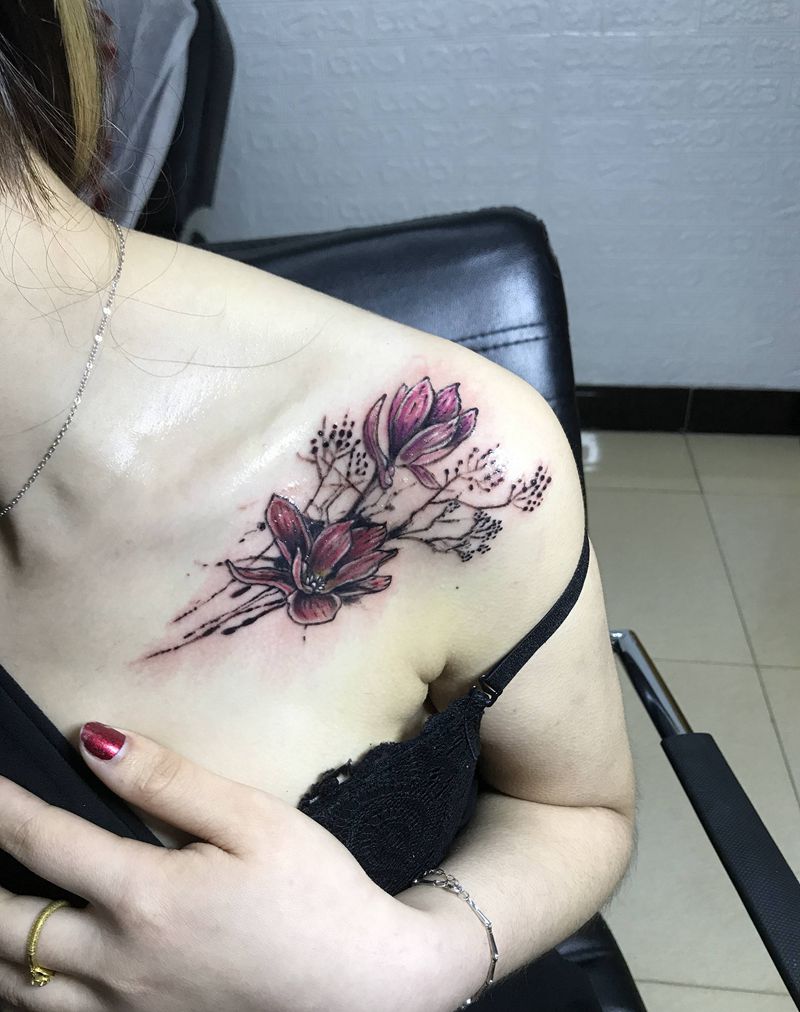 • 女性大花胸纹身_43张霸气漂亮的女性大花胸纹身图案作品