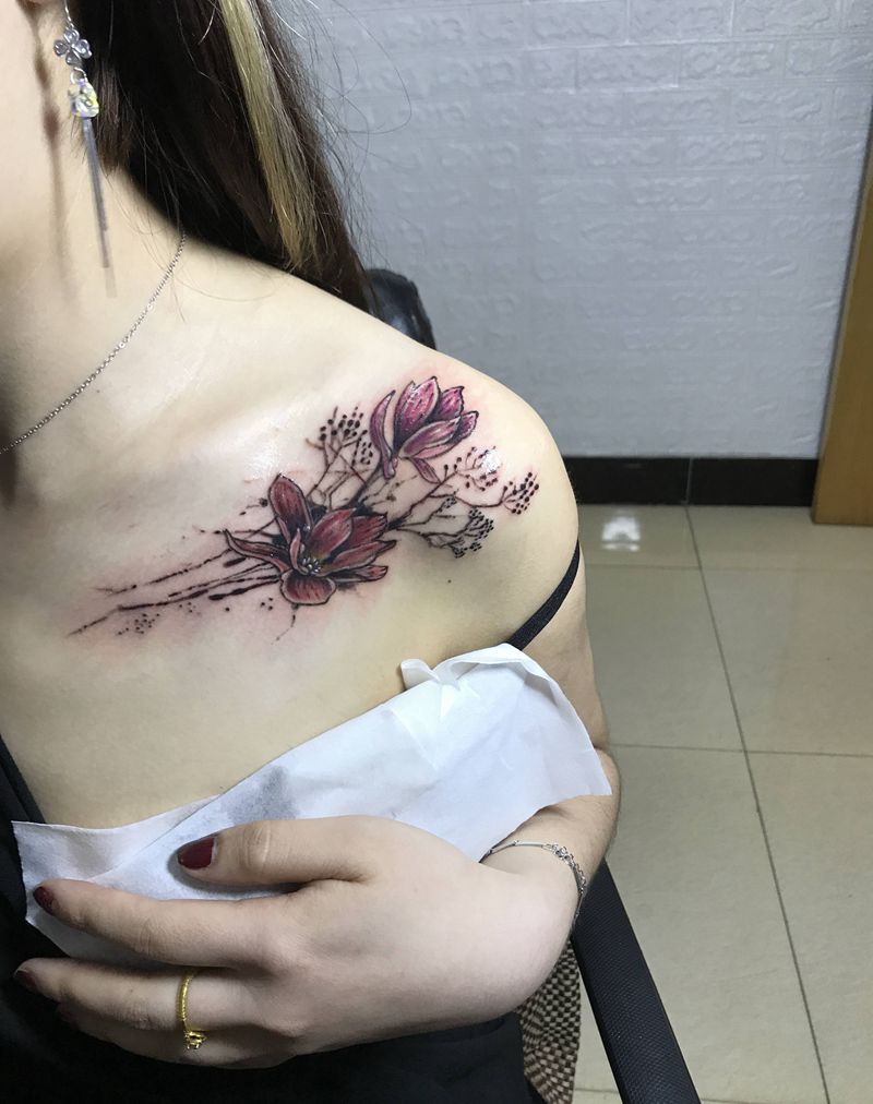 • 女性大花胸纹身_43张霸气漂亮的女性大花胸纹身图案作品
