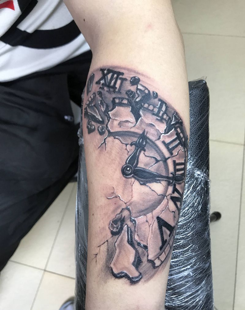 碎裂的永恒纹身图片_手臂欧美写实纹身图案