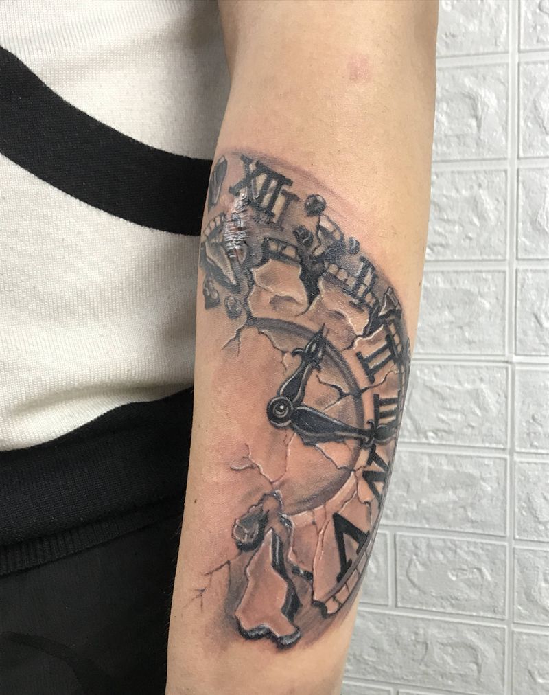 碎裂的永恒纹身图片_手臂欧美写实纹身图案